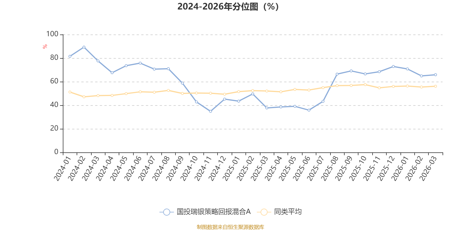 通过所选区间该基金净值增长率分位图,可以观察该基金与同类基金业绩比较情况。图为坐标原点到区间内某时点的净值增长率在同类基金中的分位数。