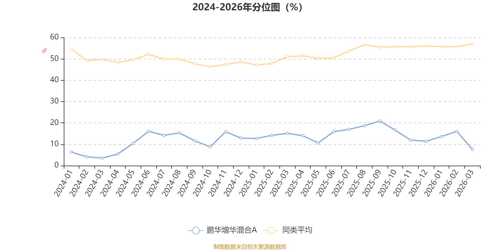 通过所选区间该基金净值增长率分位图,可以观察该基金与同类基金业绩比较情况。图为坐标原点到区间内某时点的净值增长率在同类基金中的分位数。