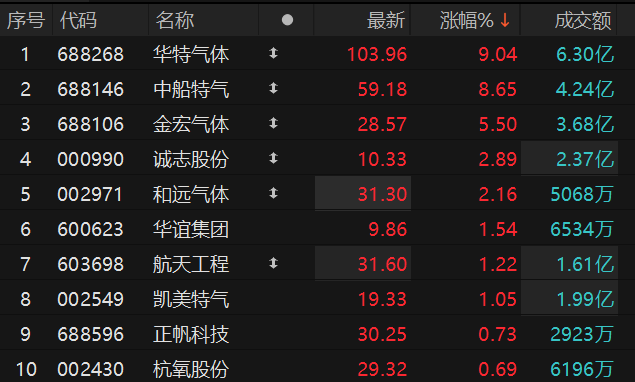 原标题:工业气体概念走强 华特气体涨超9%