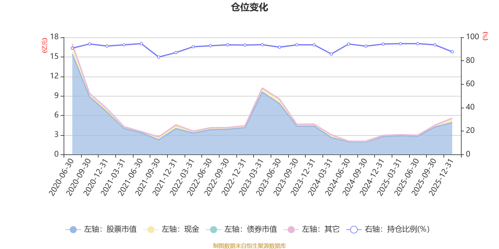 据定期报告数据统计,近三年平均股票仓位为92.5%,同类平均为85.83%。2021年上半年末基金达到94.62%的最高仓位,2021年三季度末最低,为83.17%。