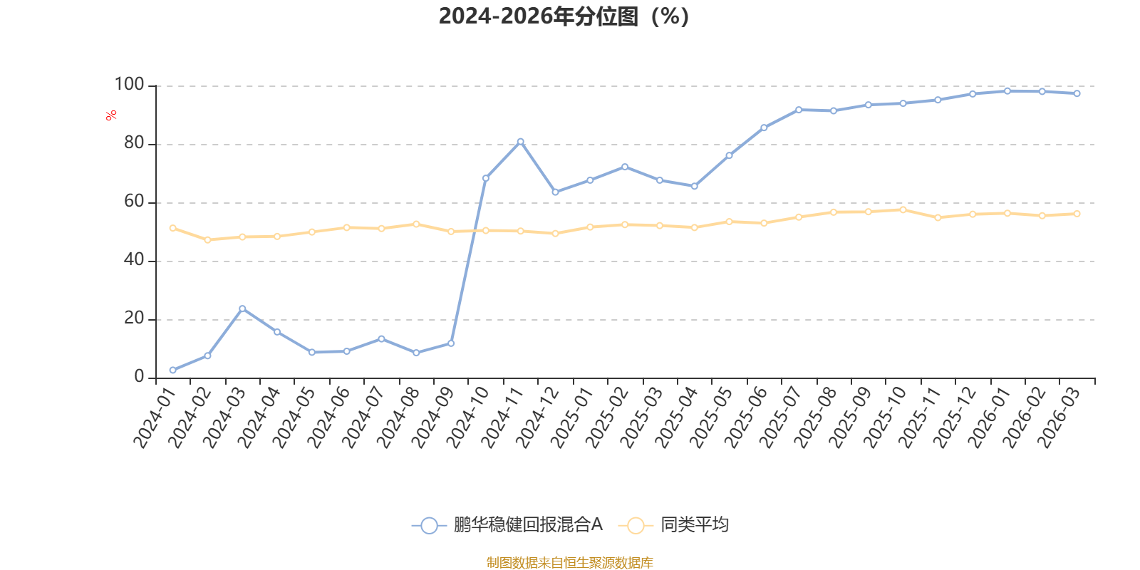 通过所选区间该基金净值增长率分位图,可以观察该基金与同类基金业绩比较情况。图为坐标原点到区间内某时点的净值增长率在同类基金中的分位数。
