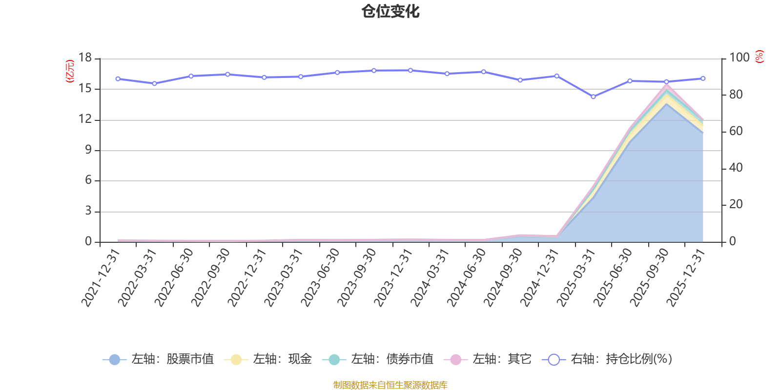 据定期报告数据统计,近三年平均股票仓位为89.68%,同类平均为88.27%。2023年末基金达到93.54%的最高仓位,2025年一季度末最低,为79.21%。