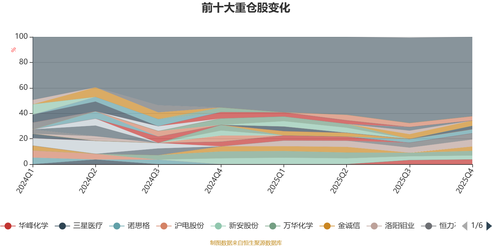 截至2025年末,基金十大重仓股分别是洛阳钼业、恒力石化、西部矿业、华峰化学、万华化学、金诚信、山东黄金、东方盛虹、新安股份、兴发集团。