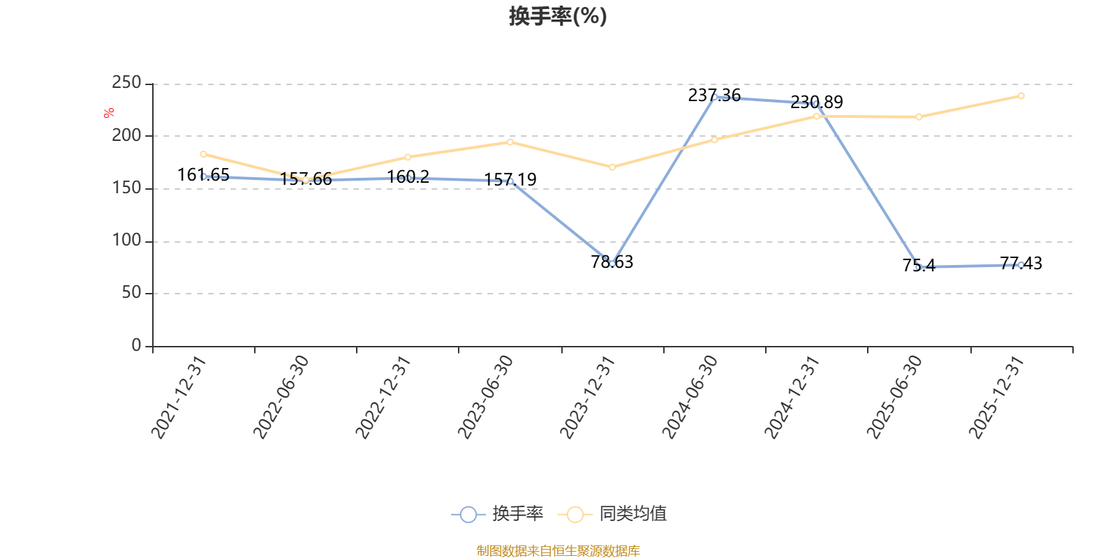 截至2025年12月31日,基金最近一年换手率约143.03%,持续1年低于同类均值。