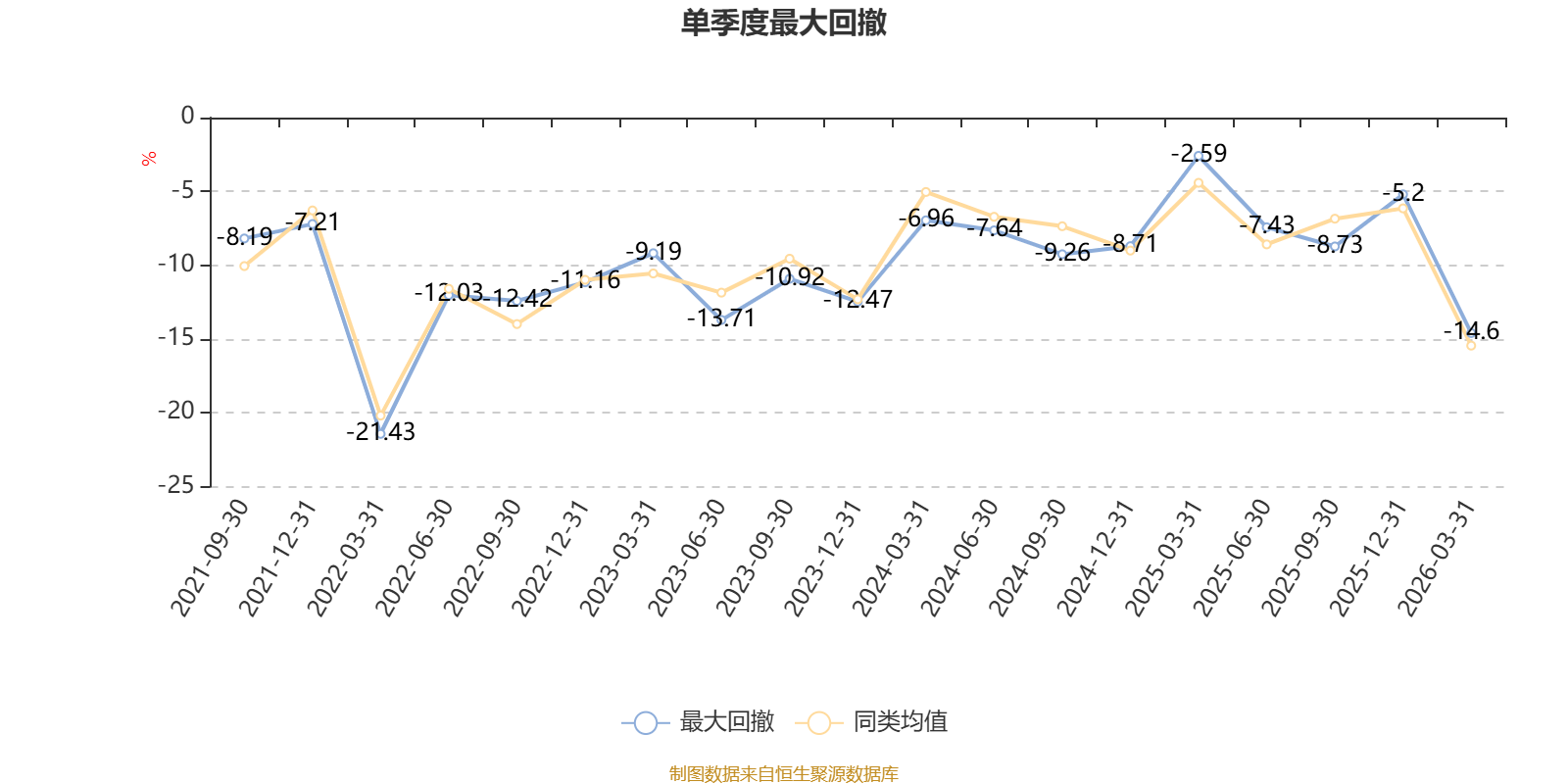 截至4月8日,基金近三年最大回撤为28.57%,同类可比基金排名3/5。单季度最大回撤出现在2022年一季度,为21.43%。