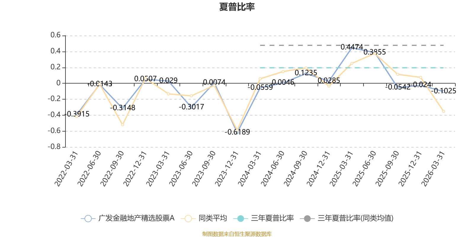 截至3月31日,基金近三年夏普比率为0.1953,位于同类可比基金5/5。