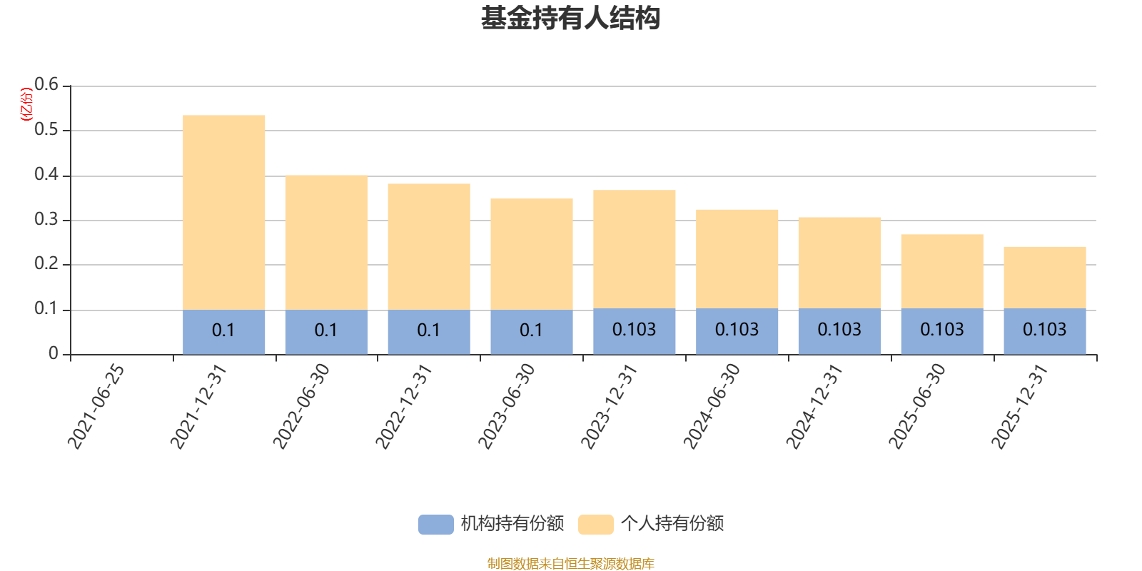 截至2025年12月31日,基金持有人共计509户,合计持有2407.9万份。其中管理人员工持有20.73万份,占比0.86%,机构持有份额占比42.98%,个人投资者占比57.02%。