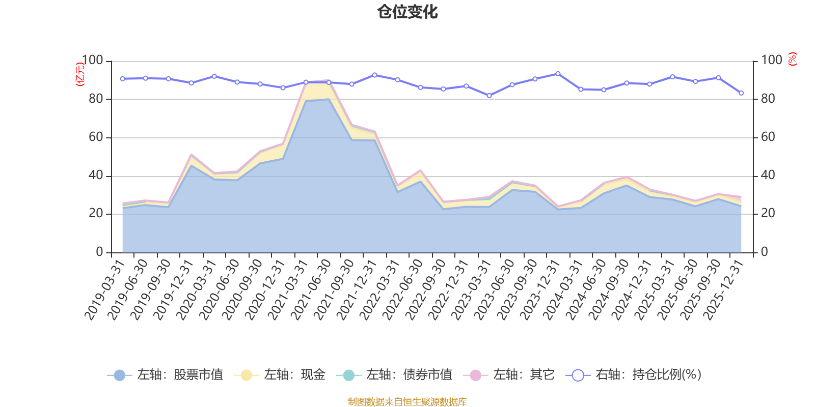 据定期报告数据统计,近三年平均股票仓位为88.01%,同类平均为88.64%。2023年末基金达到93.38%的最高仓位,2023年一季度末最低,为81.98%。