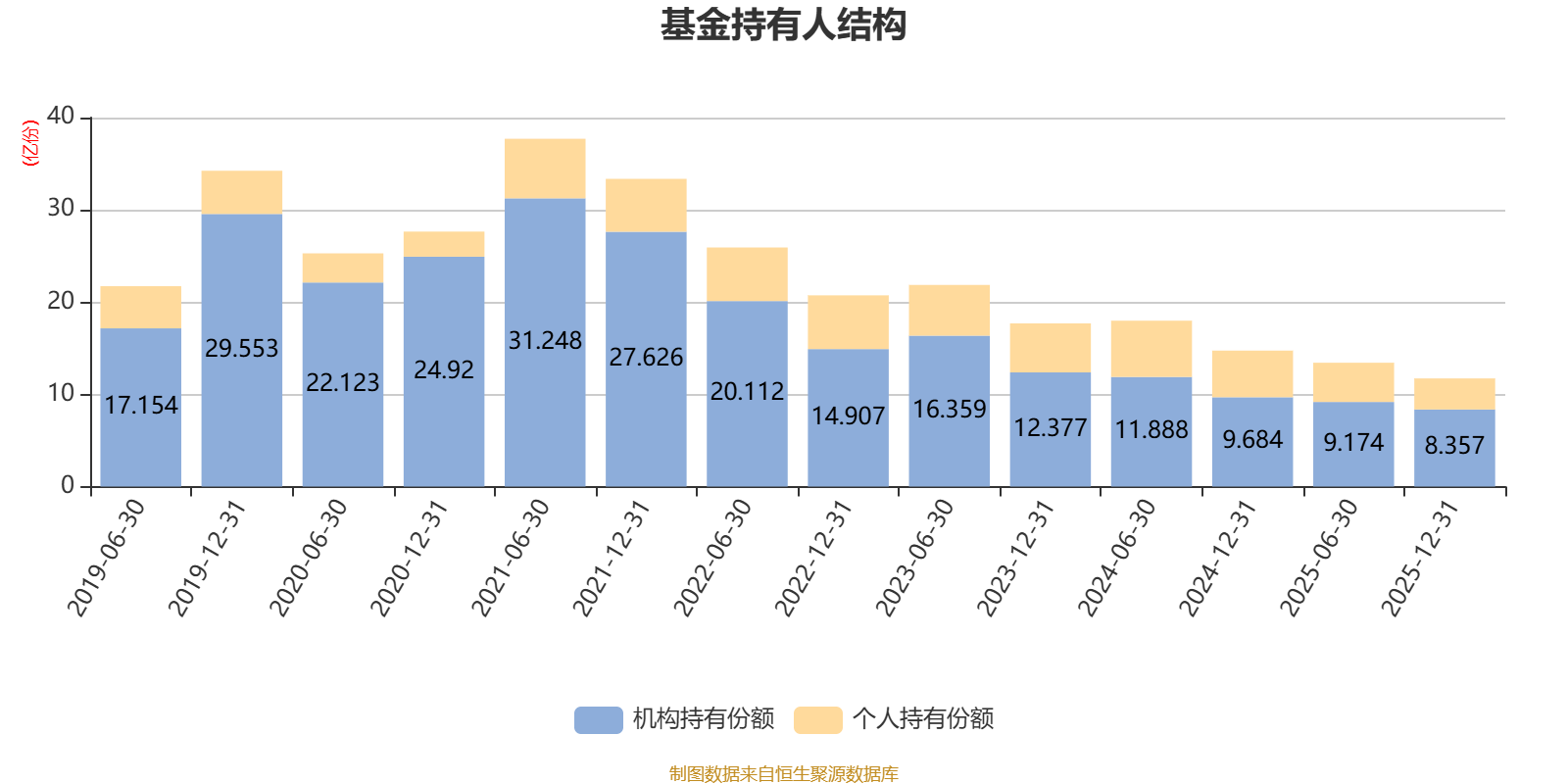 截至2025年12月31日,基金持有人共计11.31万户,合计持有11.72亿份。其中管理人员工持有145.18万份,占比0.12%,机构持有份额占比71.28%,个人投资者占比28.72%。
