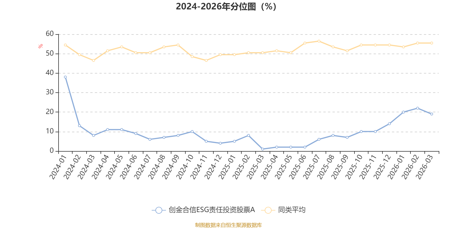 通过所选区间该基金净值增长率分位图,可以观察该基金与同类基金业绩比较情况。图为坐标原点到区间内某时点的净值增长率在同类基金中的分位数。
