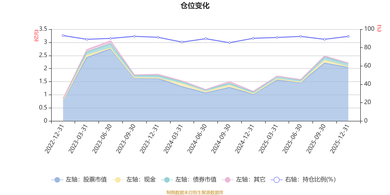 据定期报告数据统计,近三年平均股票仓位为89.87%,同类平均为88.36%。2022年末基金达到93.18%的最高仓位,2024年三季度末最低,为85.35%。