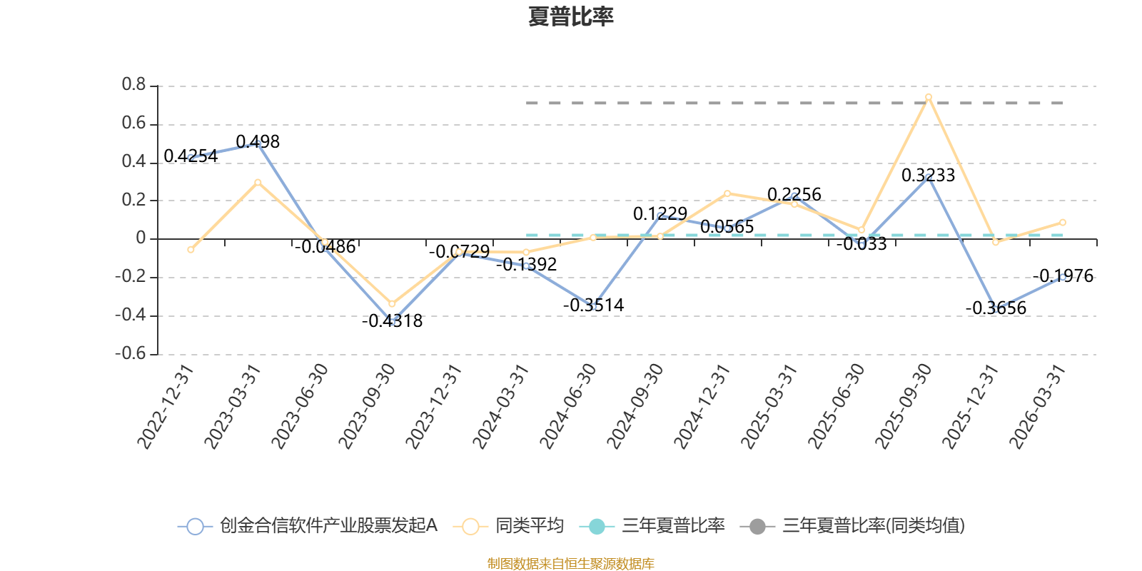 截至3月31日,基金近三年夏普比率为0.0208,位于同类可比基金53/53。