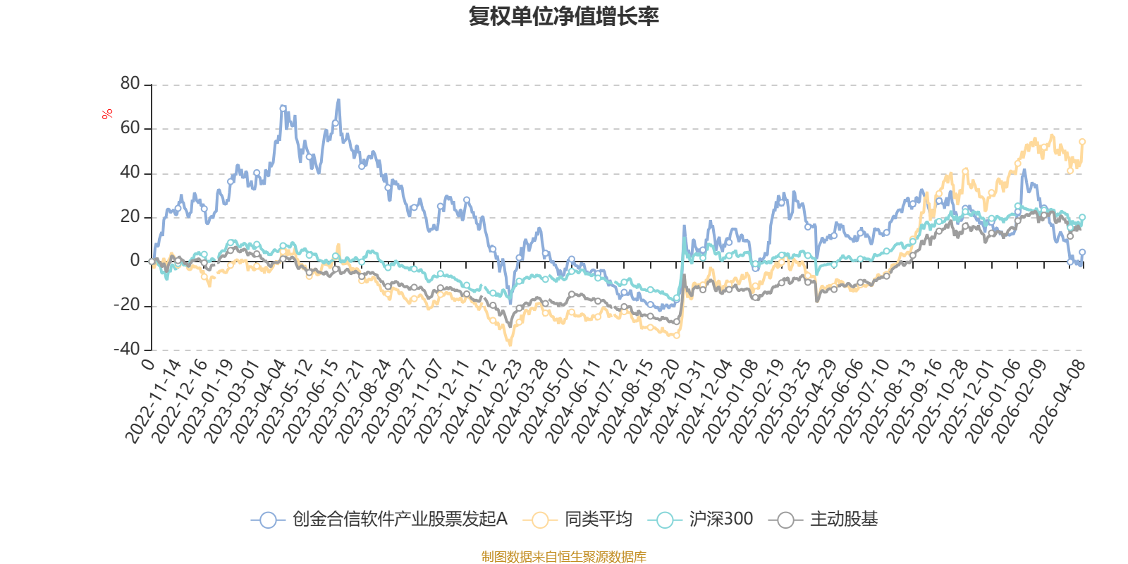 截至4月8日,创金合信软件产业股票发起A近三个月复权单位净值增长率为-14.71%,位于同类可比基金62/63;近半年复权单位净值增长率为-20.63%,位于同类可比基金62/63;近一年复权单位净值增长率为0.98%,位于同类可比基金63/63;近三年复权单位净值增长率为-38.91%,位于同类可比基金52/53。