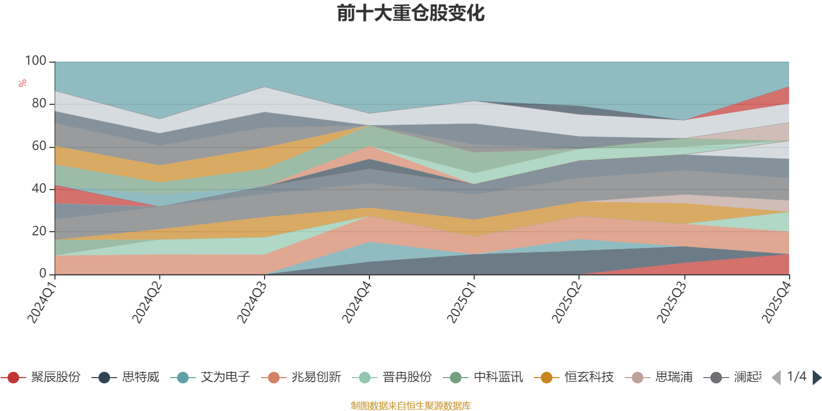 该基金持股集中度较高,近2年前十大重仓股集中度长期超过60%。截至2025年末,基金十大重仓股分别是兆易创新、澜起科技、聚辰股份、普冉股份、芯原股份、海光信息、北京君正、寒武纪、晶合集成、思瑞浦。