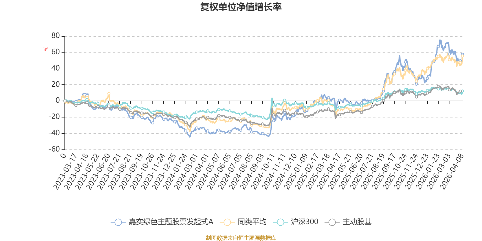 截至4月8日,嘉实绿色主题股票发起式A近三个月复权单位净值增长率为5.39%,位于同类可比基金25/63;近半年复权单位净值增长率为3.28%,位于同类可比基金36/63;近一年复权单位净值增长率为74.99%,位于同类可比基金34/63;近三年复权单位净值增长率为44.22%,位于同类可比基金27/53。