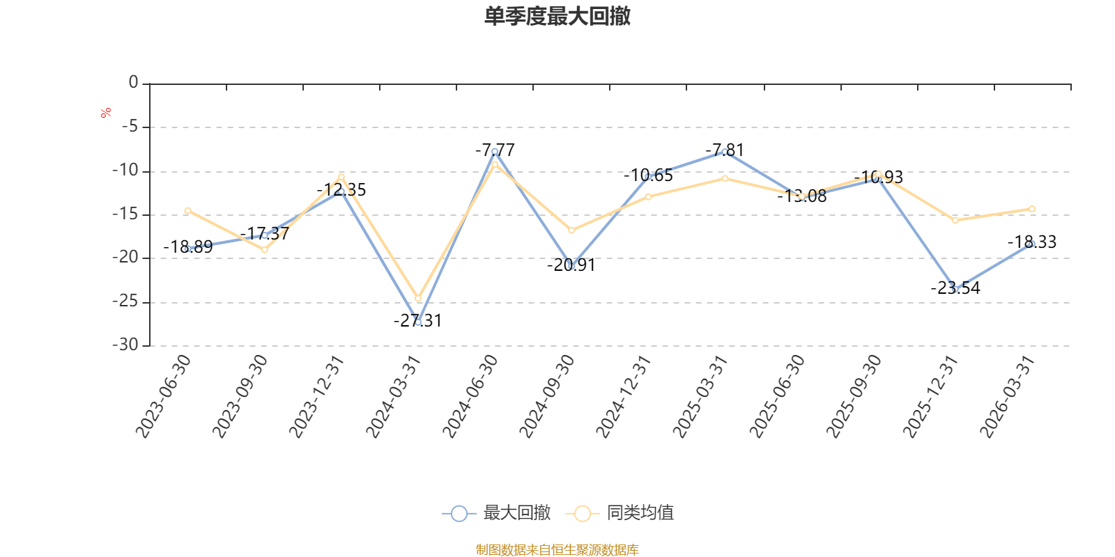 截至4月8日,基金近三年最大回撤为49.38%,同类可比基金排名43/53。单季度最大回撤出现在2024年一季度,为27.31%。