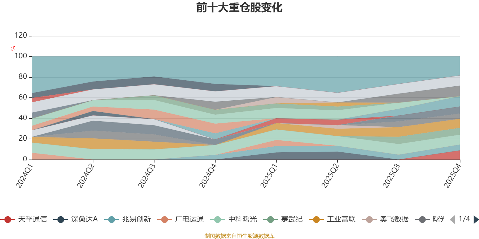 该基金持股集中度较高,近2年前十大重仓股集中度长期超过60%。截至2025年末,基金十大重仓股分别是中际旭创、新易盛、海光信息、中科曙光、天孚通信、工业富联、浪潮信息、寒武纪、兆易创新、曙光数创。