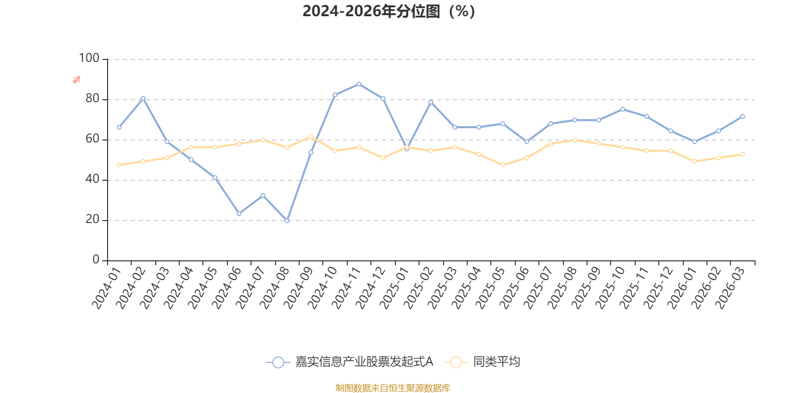 通过所选区间该基金净值增长率分位图,可以观察该基金与同类基金业绩比较情况。图为坐标原点到区间内某时点的净值增长率在同类基金中的分位数。