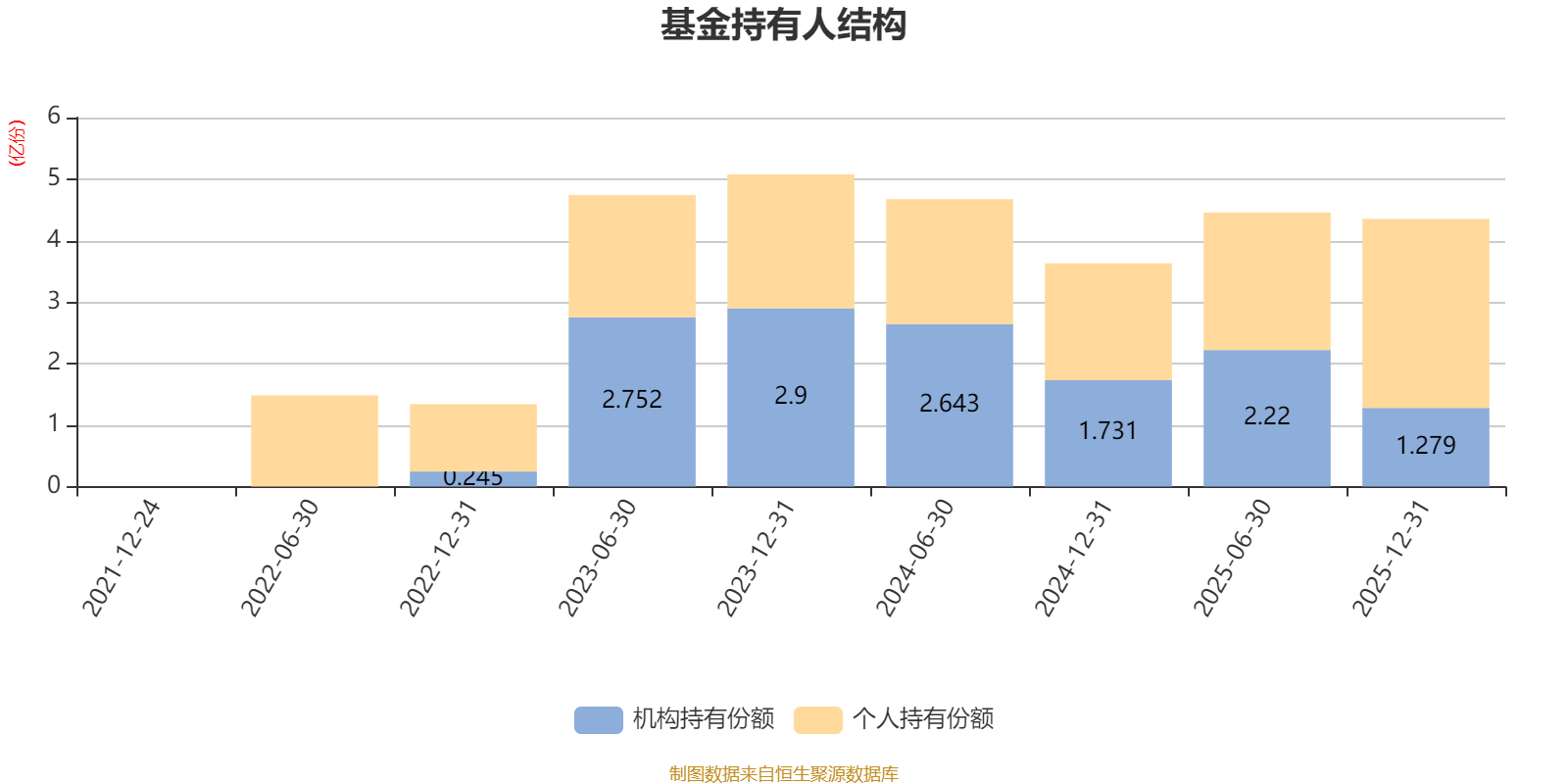 截至2025年12月31日,基金持有人共计8.33万户,合计持有4.35亿份。其中管理人员工持有280.65万份,占比0.64%,机构持有份额占比29.38%,个人投资者占比70.62%。