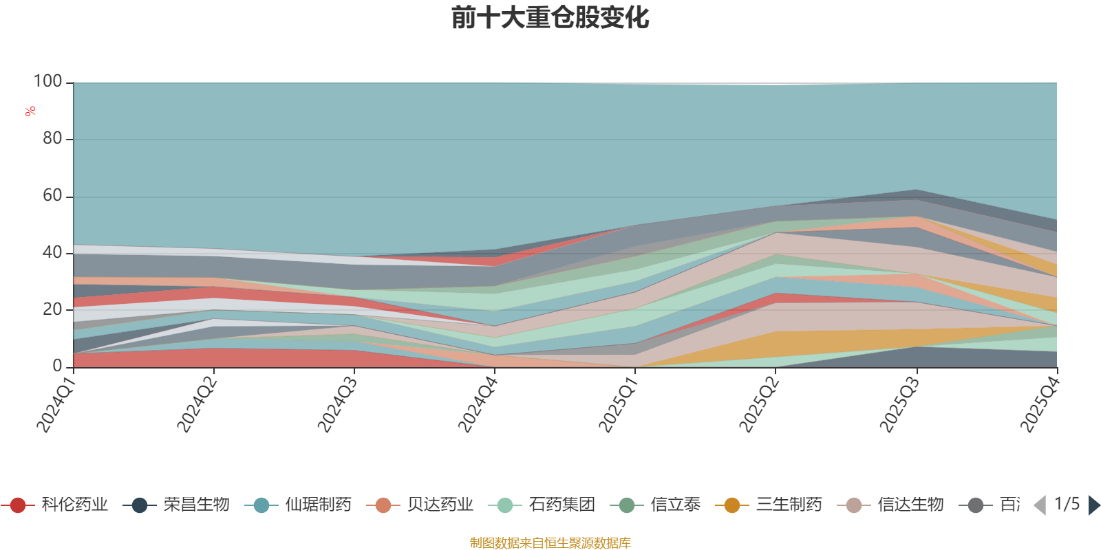 截至2025年末,基金十大重仓股分别是科伦博泰生物-B、恒瑞医药、荣昌生物、映恩生物-B、石药集团、泽璟制药、海思科、热景生物、百利天恒、信立泰。