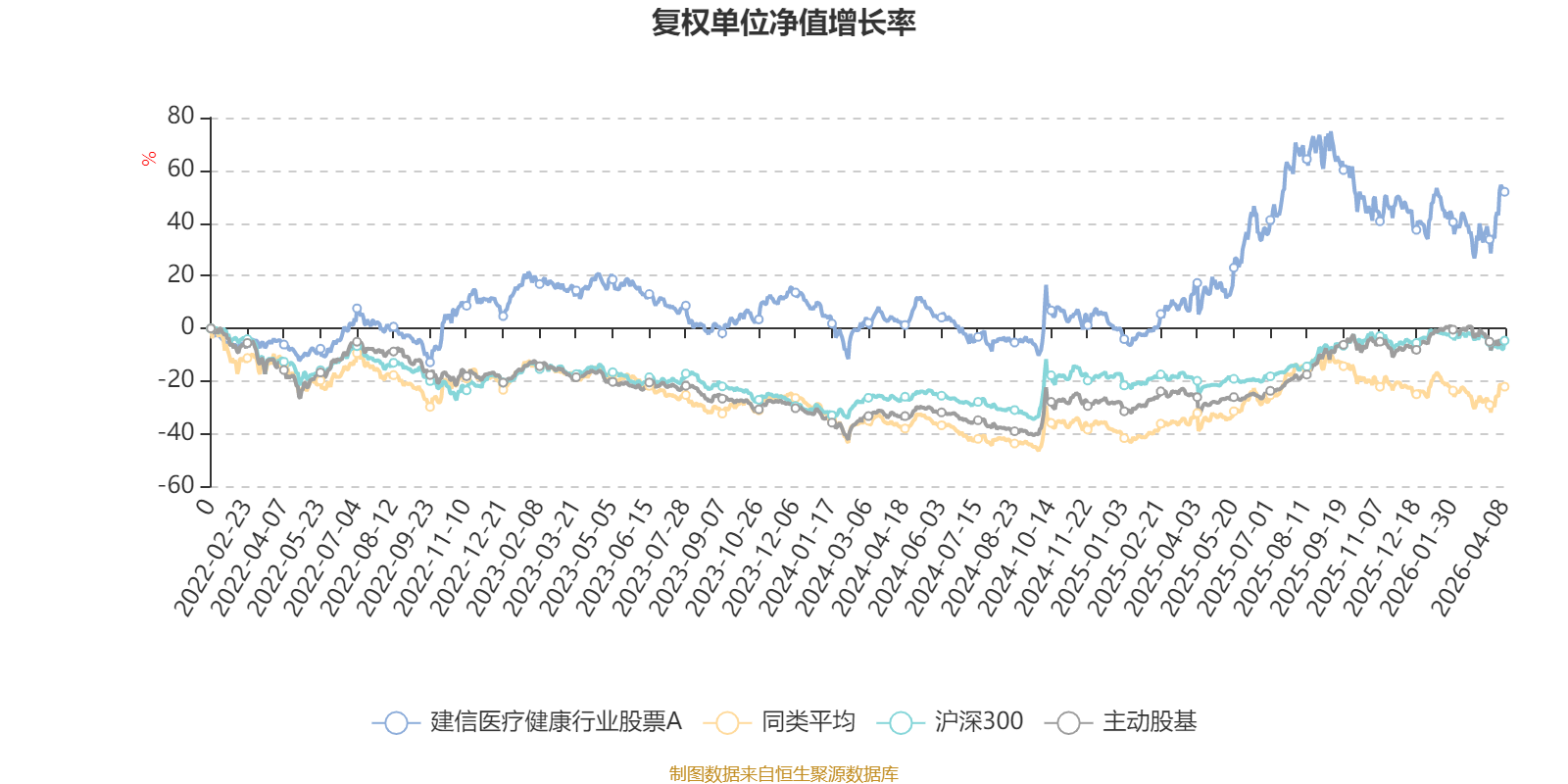 截至4月8日,建信医疗健康行业股票A近三个月复权单位净值增长率为2.88%,位于同类可比基金4/57;近半年复权单位净值增长率为-5.96%,位于同类可比基金12/57;近一年复权单位净值增长率为42.23%,位于同类可比基金10/57;近三年复权单位净值增长率为28.35%,位于同类可比基金5/48。