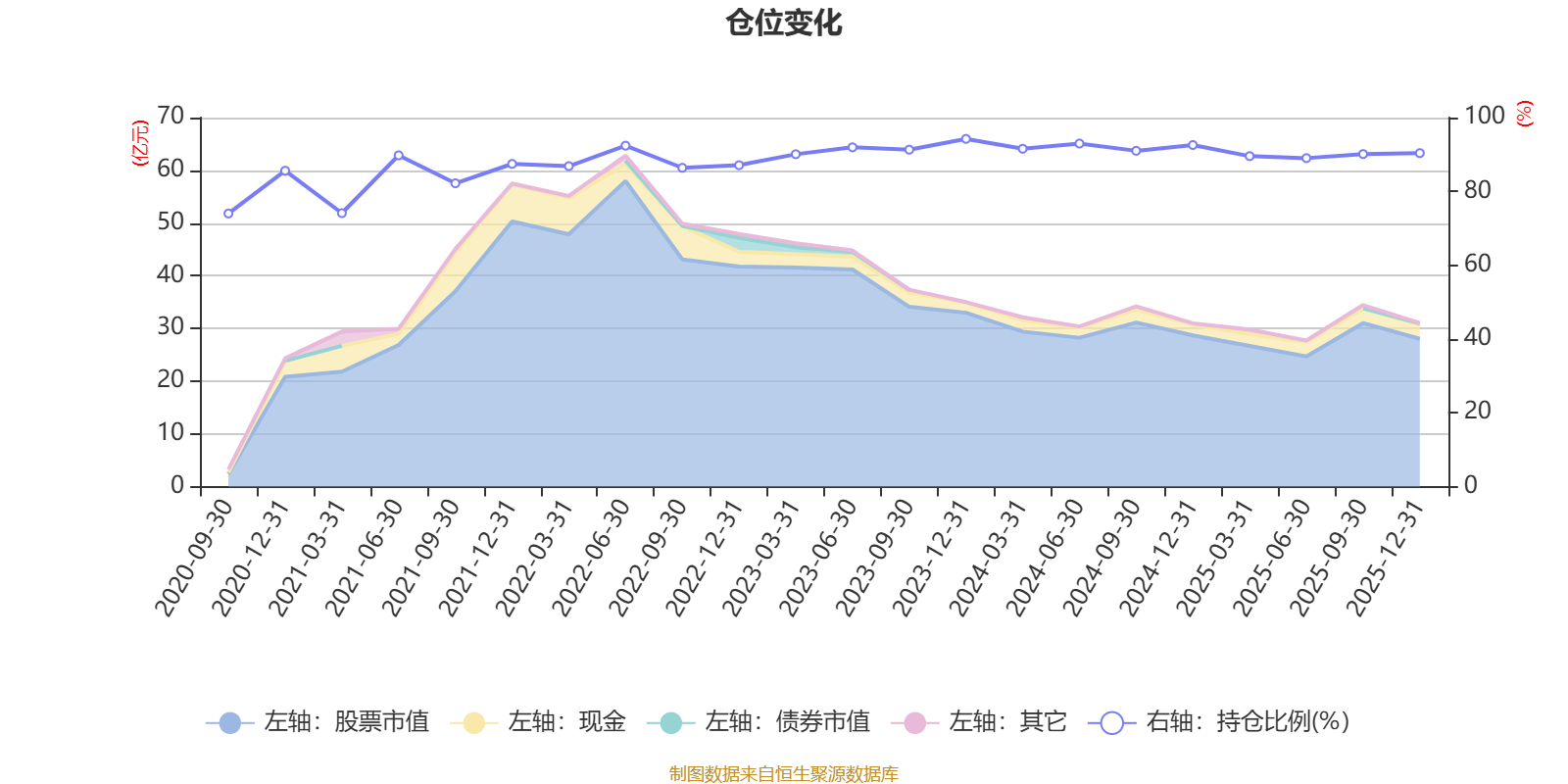 据定期报告数据统计,近三年平均股票仓位为91.22%,同类平均为87.73%。2023年末基金达到94.23%的最高仓位,2020年三季度末最低,为74.01%。
