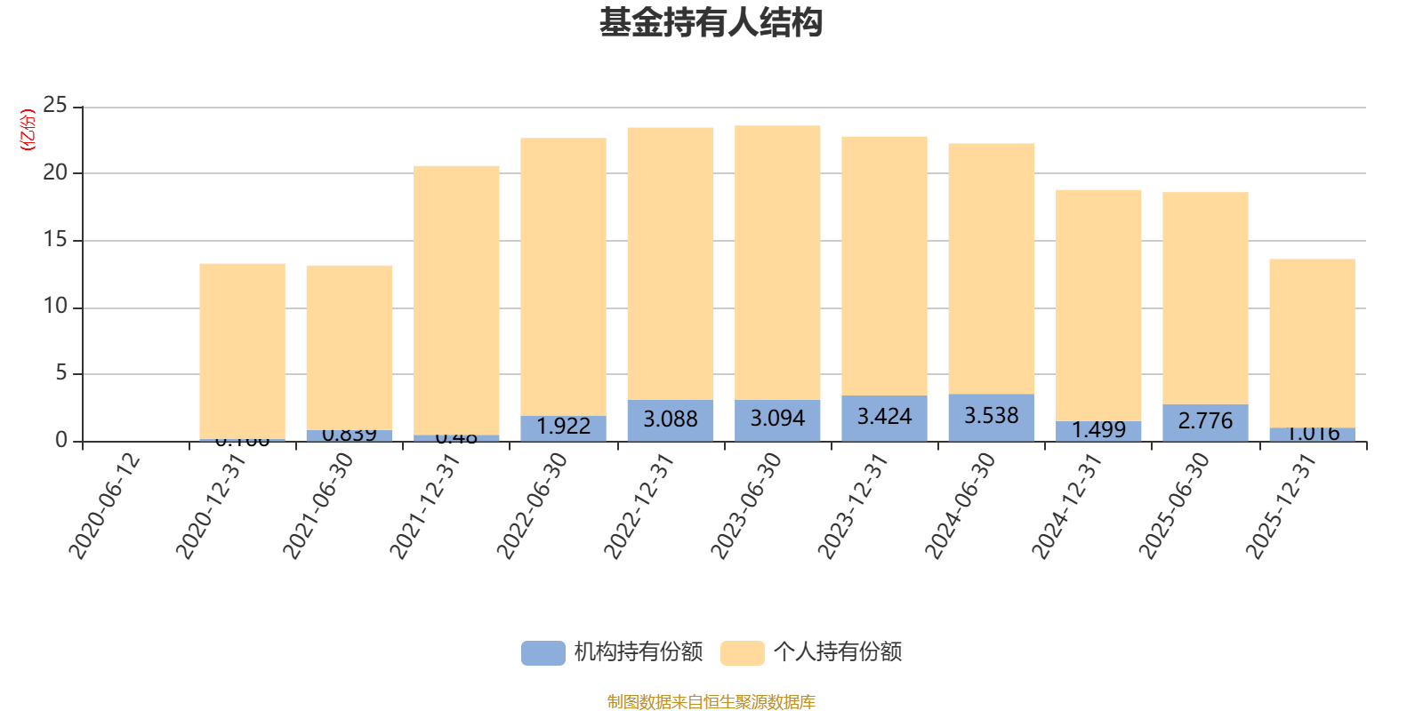 截至2025年12月31日,基金持有人共计15.59万户,合计持有13.62亿份。其中管理人员工持有222.16万份,占比0.16%,机构持有份额占比7.46%,个人投资者占比92.54%。