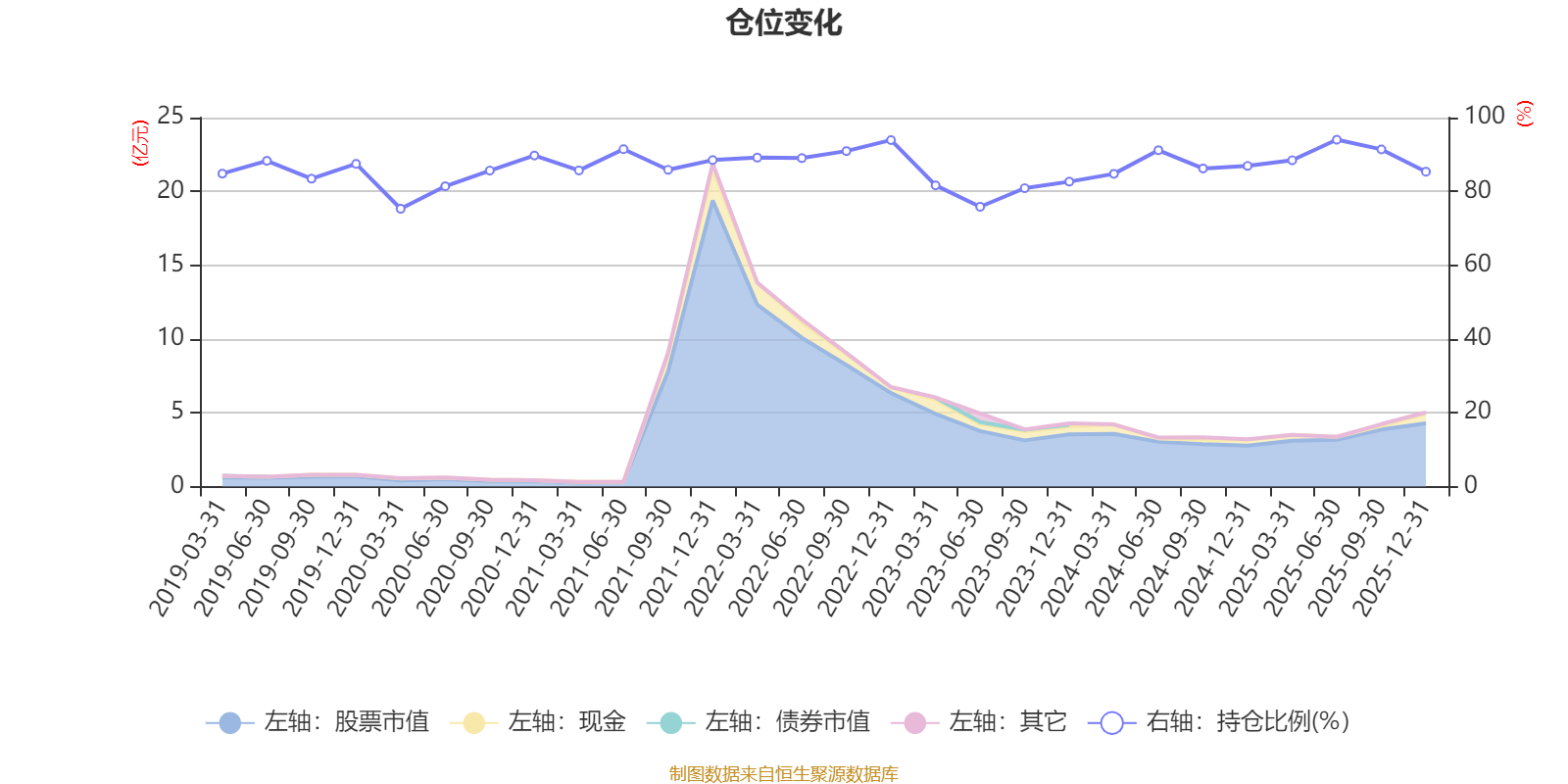 据定期报告数据统计,近三年平均股票仓位为85.77%,同类平均为88.36%。2025年上半年末基金达到94.01%的最高仓位,2020年一季度末最低,为75.3%。