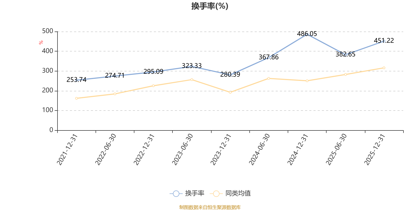 截至2025年12月31日,基金最近一年换手率约778.03%,持续高于同类均值。