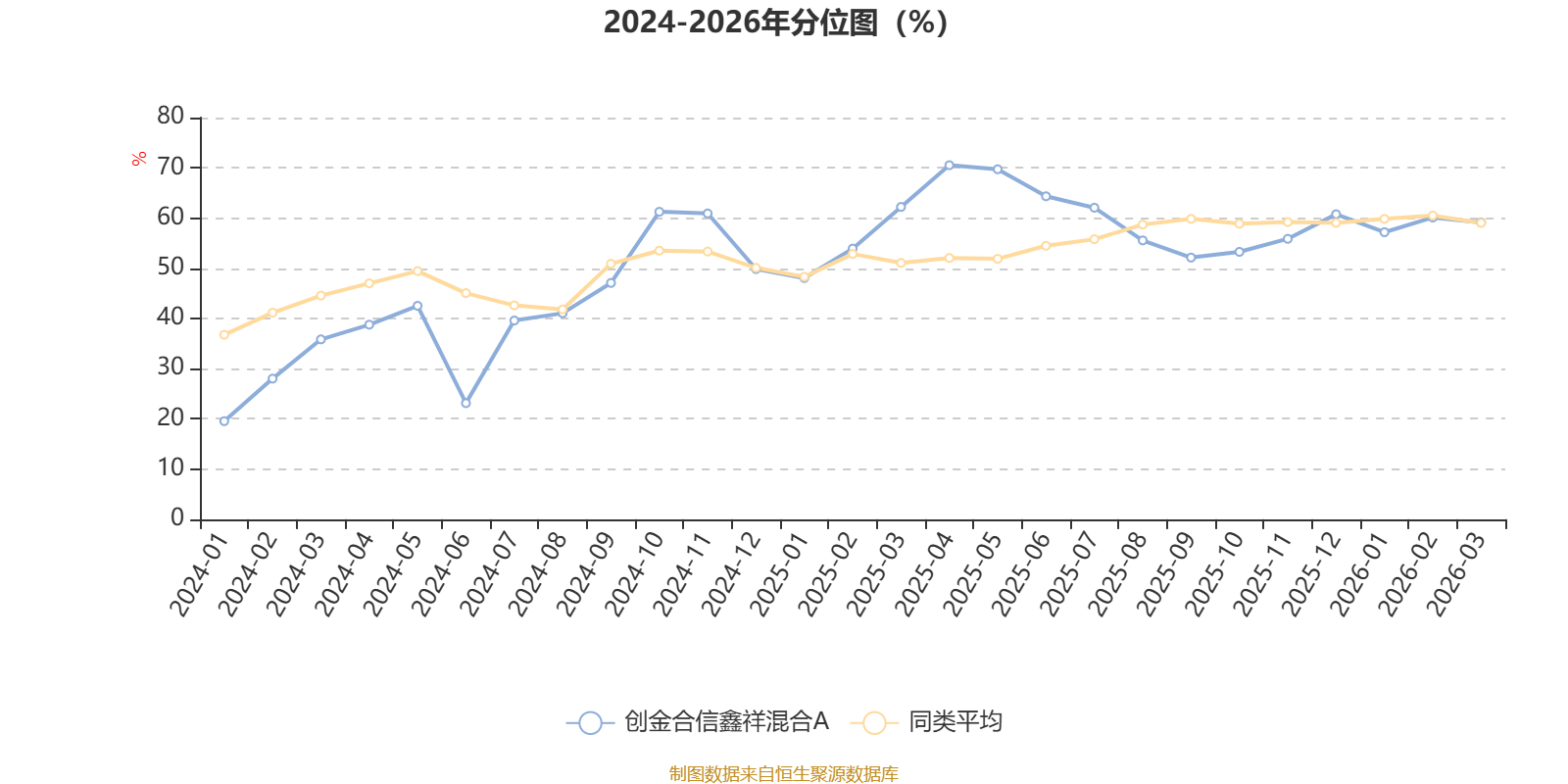 通过所选区间该基金净值增长率分位图,可以观察该基金与同类基金业绩比较情况。图为坐标原点到区间内某时点的净值增长率在同类基金中的分位数。