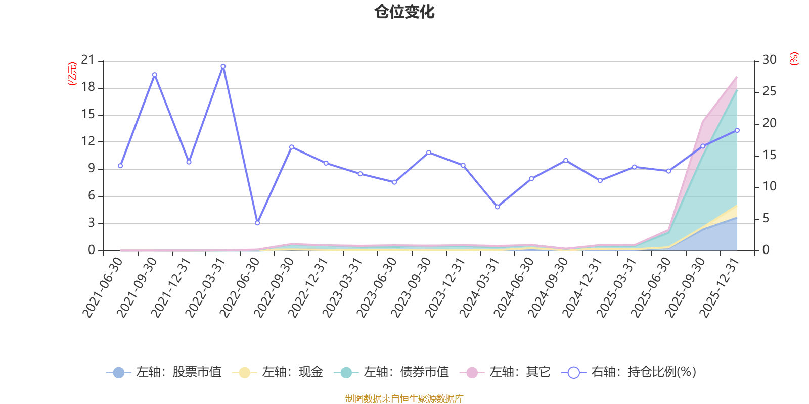 据定期报告数据统计,近三年平均股票仓位为13.08%,同类平均为19.2%。2022年一季度末基金达到29.13%的最高仓位,2022年上半年末最低,为4.4%。