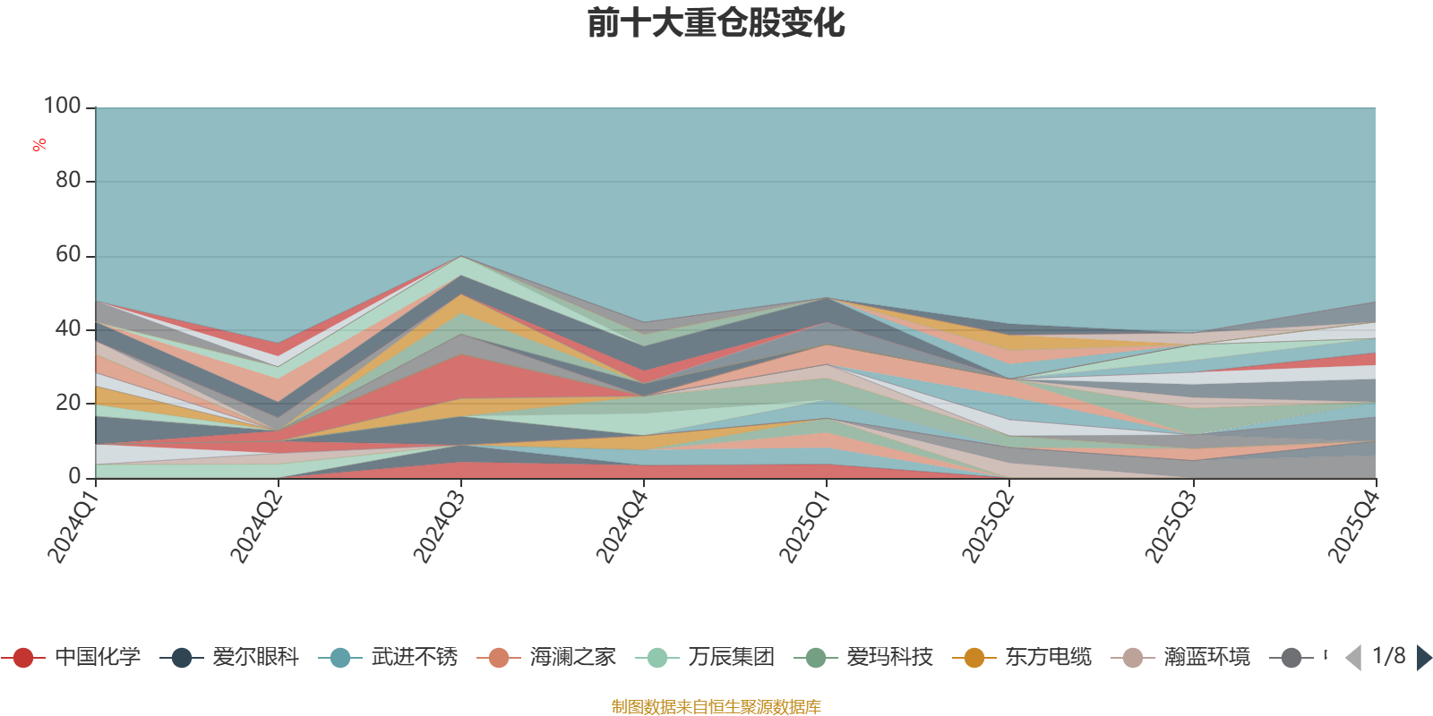 截至2025年末,基金十大重仓股分别是中国太保、中国平安、中国国航、中国人寿、牧原股份、中国海油、三环集团、美盈森、江淮汽车、隆达股份。