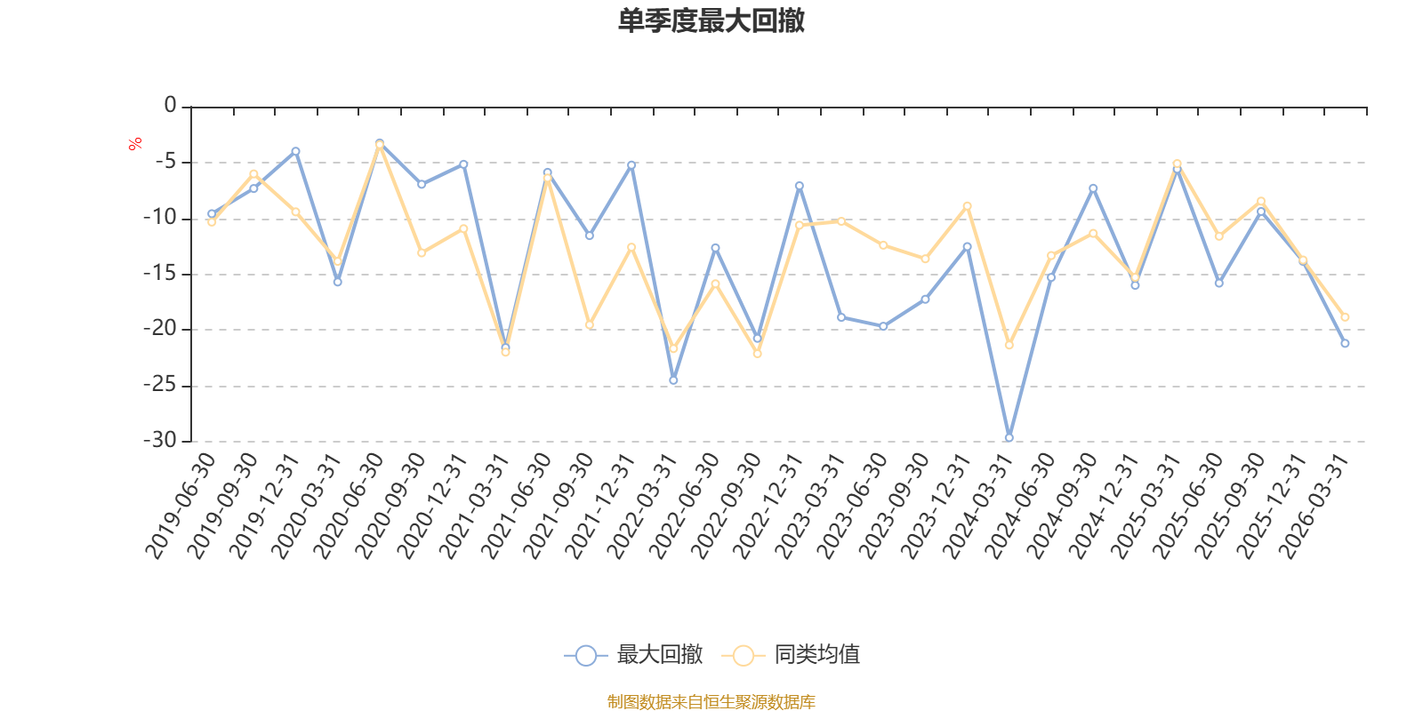 截至4月8日,基金近三年最大回撤为34.65%,同类可比基金排名15/48。单季度最大回撤出现在2024年一季度,为29.68%。