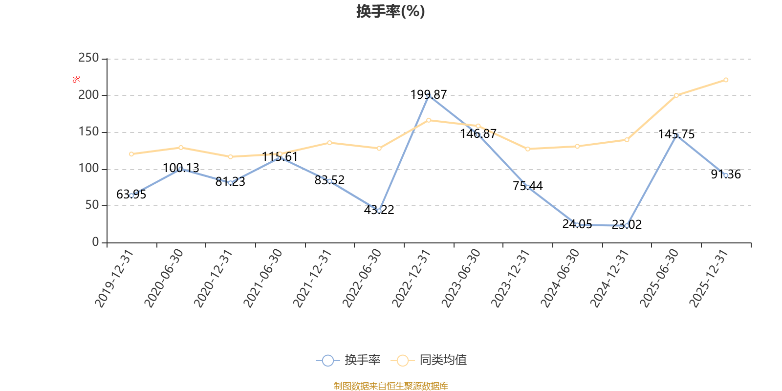 截至2025年12月31日,基金最近一年换手率约213.16%,持续3年低于同类均值。
