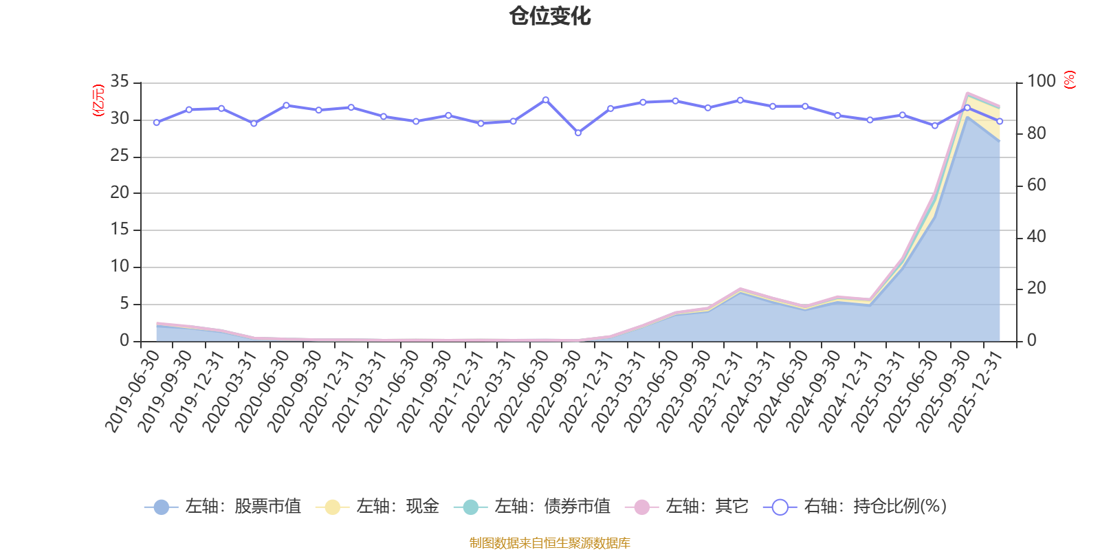 据定期报告数据统计,近三年平均股票仓位为89.09%,同类平均为88.23%。2022年上半年末基金达到93.3%的最高仓位,2022年三季度末最低,为80.56%。