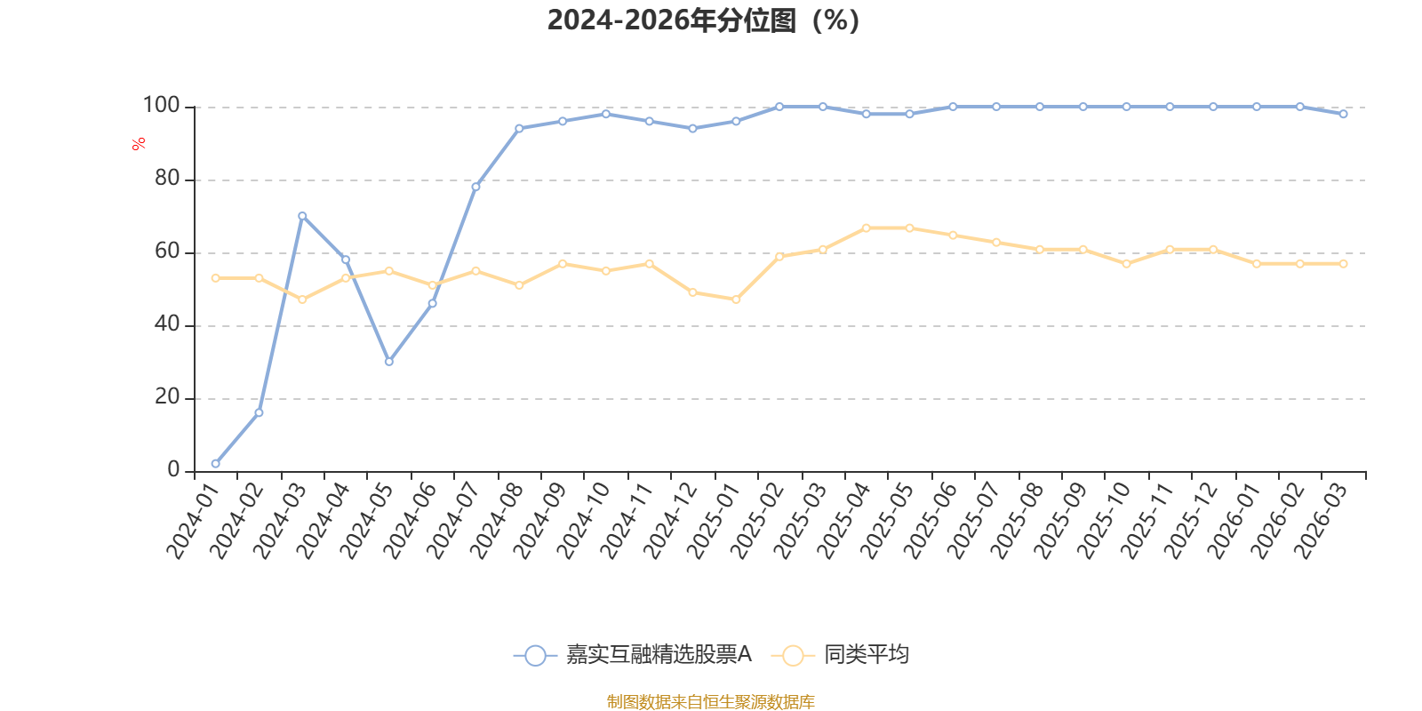 通过所选区间该基金净值增长率分位图,可以观察该基金与同类基金业绩比较情况。图为坐标原点到区间内某时点的净值增长率在同类基金中的分位数。