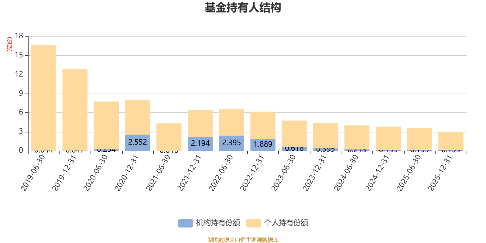 截至2025年12月31日,基金持有人共计1.69万户,合计持有2.97亿份。其中管理人员工持有104.4万份,占比0.35%,机构持有份额占比5.36%,个人投资者占比94.64%。