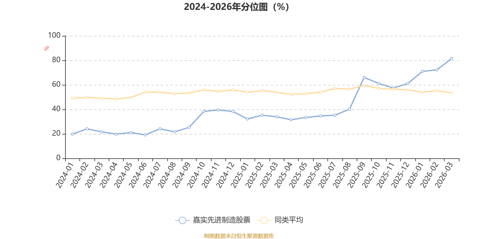 通过所选区间该基金净值增长率分位图,可以观察该基金与同类基金业绩比较情况。图为坐标原点到区间内某时点的净值增长率在同类基金中的分位数。