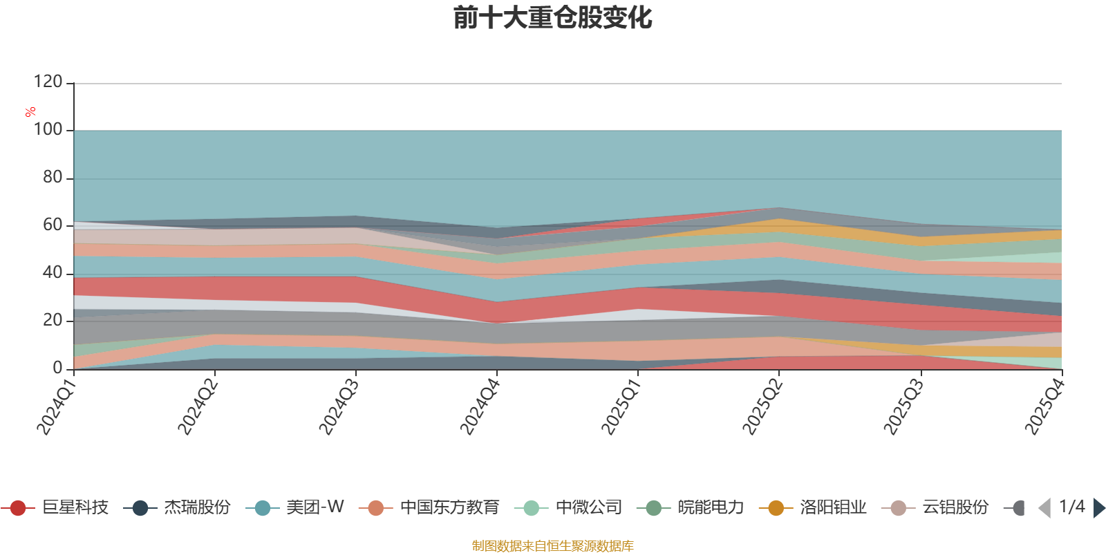 该基金持股集中度较高。截至2025年末,基金十大重仓股分别是吉祥航空、中国南方航空股份、哔哩哔哩-W、云铝股份、极兔速递-W、晶晨股份、中微公司、洛阳钼业、珍酒李渡、亚盛医药-B。