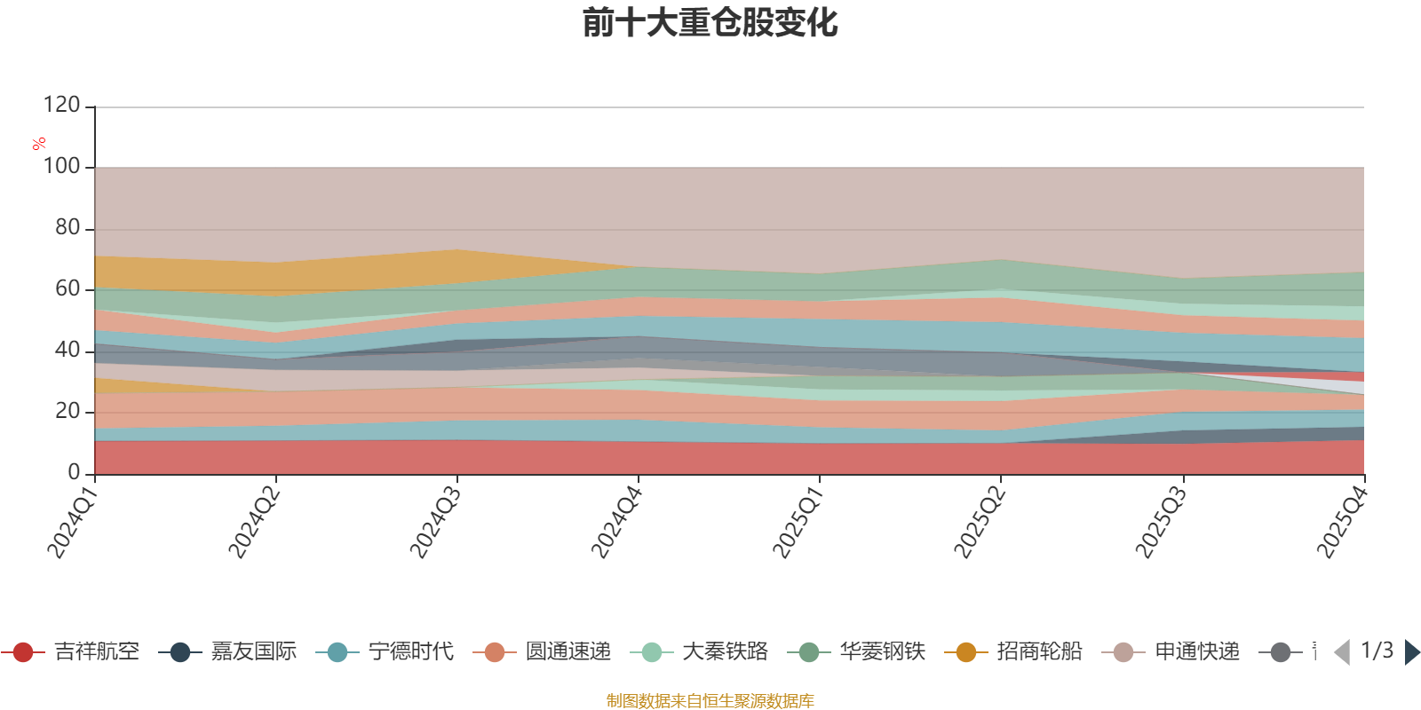 该基金持股集中度较高,近2年前十大重仓股集中度长期超过60%。截至2025年末,基金十大重仓股分别是南方航空、中国东航、吉祥航空、顺丰控股、宁德时代、圆通速递、厦门象屿、嘉友国际、银轮股份、华夏航空。