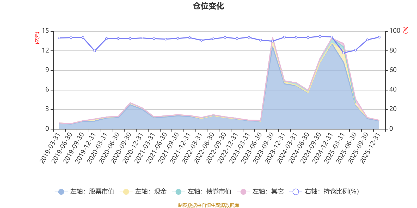 据定期报告数据统计,近三年平均股票仓位为90.66%,同类平均为88.27%。2024年三季度末基金达到94.64%的最高仓位,2025年一季度末最低,为77.87%。