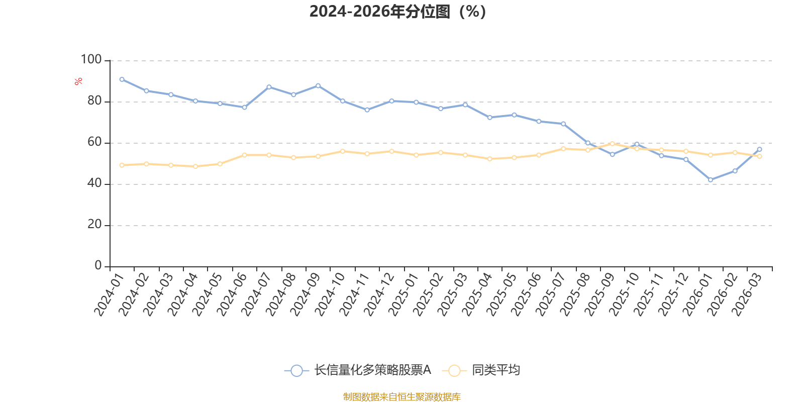 通过所选区间该基金净值增长率分位图,可以观察该基金与同类基金业绩比较情况。图为坐标原点到区间内某时点的净值增长率在同类基金中的分位数。