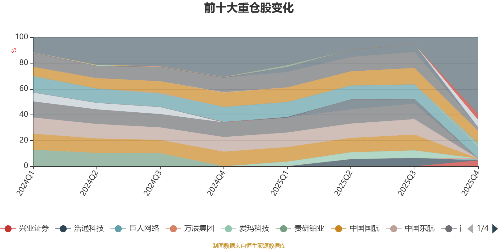 截至2025年末,基金十大重仓股分别是春秋航空、华夏航空、润贝航科、国泰海通、兴业证券、吉祥航空、东方证券、万辰集团、巨人网络、高德红外。