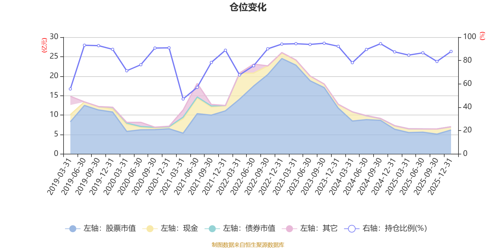 据定期报告数据统计,近三年平均股票仓位为88.59%,同类平均为72.57%。2023年三季度末基金达到94.81%的最高仓位,2021年一季度末最低,为47.07%。