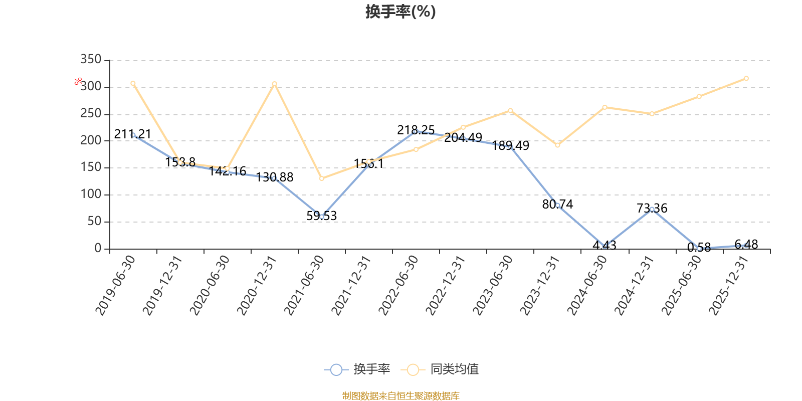 截至2025年12月31日,基金最近一年换手率约7.38%,持续3年低于同类均值。