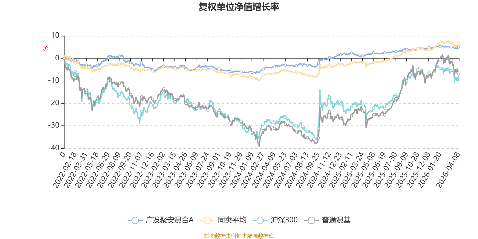 截至4月8日,广发聚安混合A近三个月复权单位净值增长率为-0.07%,位于同类可比基金421/629;近半年复权单位净值增长率为1.11%,位于同类可比基金359/629;近一年复权单位净值增长率为3.25%,位于同类可比基金551/629;近三年复权单位净值增长率为8.32%,位于同类可比基金376/581。