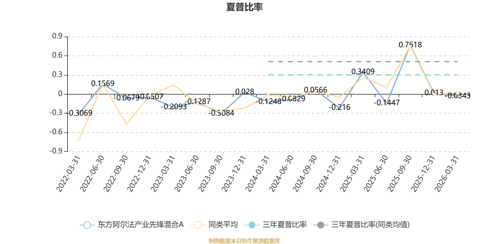 截至3月31日,基金近三年夏普比率为0.3009,位于同类可比基金202/260。