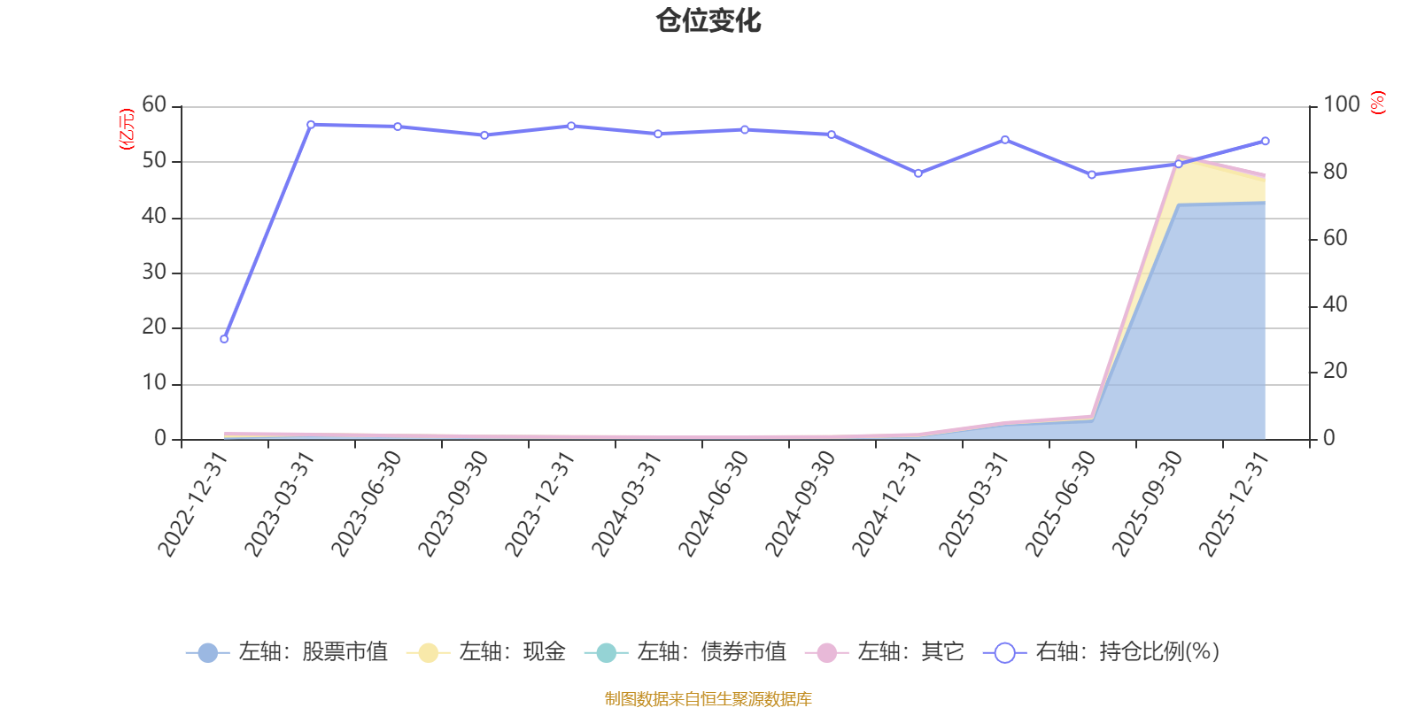 据定期报告数据统计,近三年平均股票仓位为89.27%,同类平均为84.04%。2023年一季度末基金达到94.47%的最高仓位,2022年末最低,为30.13%。