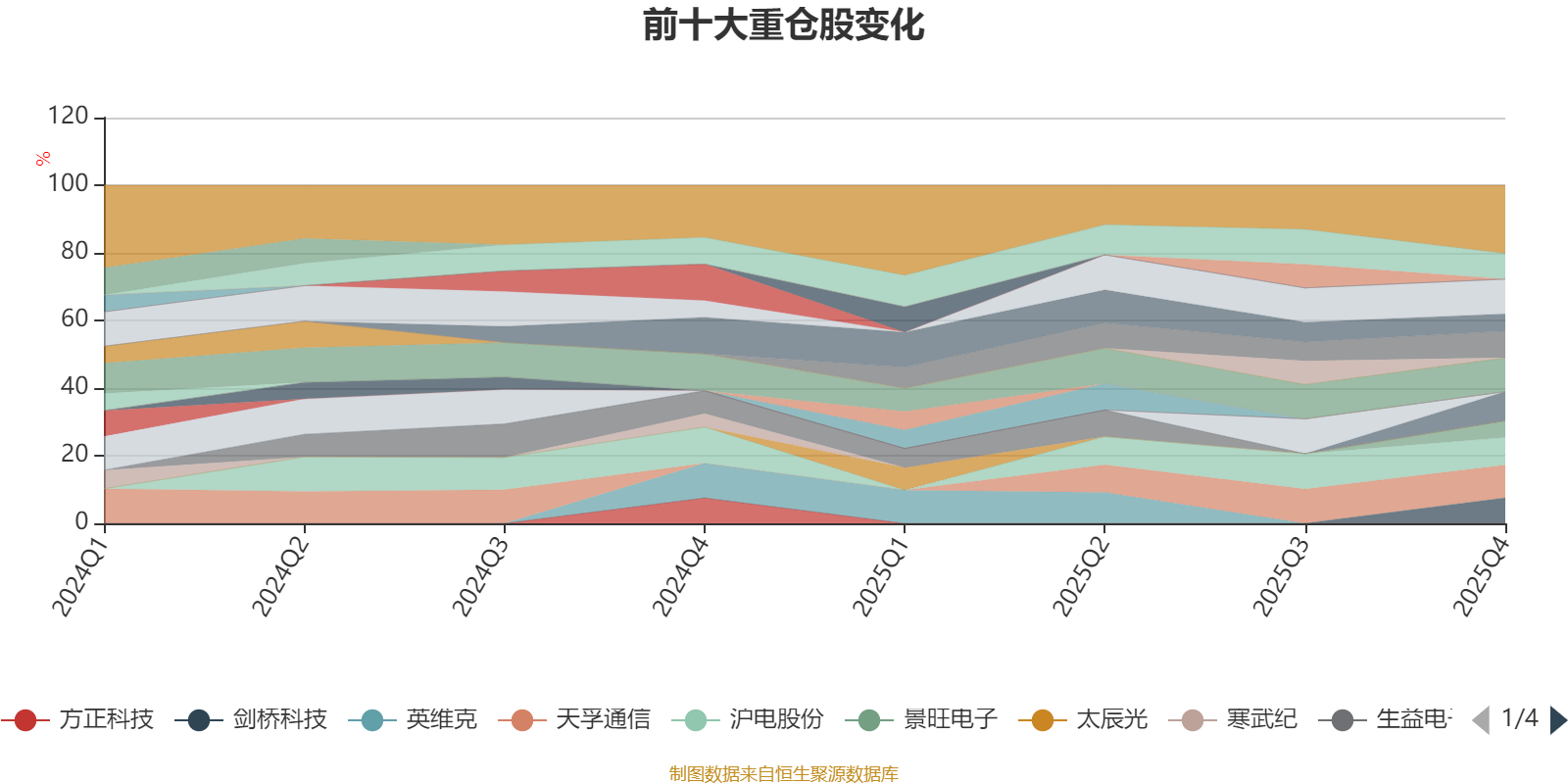 该基金持股集中度较高,近2年前十大重仓股集中度长期超过60%。截至2025年末,基金十大重仓股分别是中际旭创、新易盛、天孚通信、源杰科技、沪电股份、长芯博创、剑桥科技、胜宏科技、麦格米特、景旺电子。