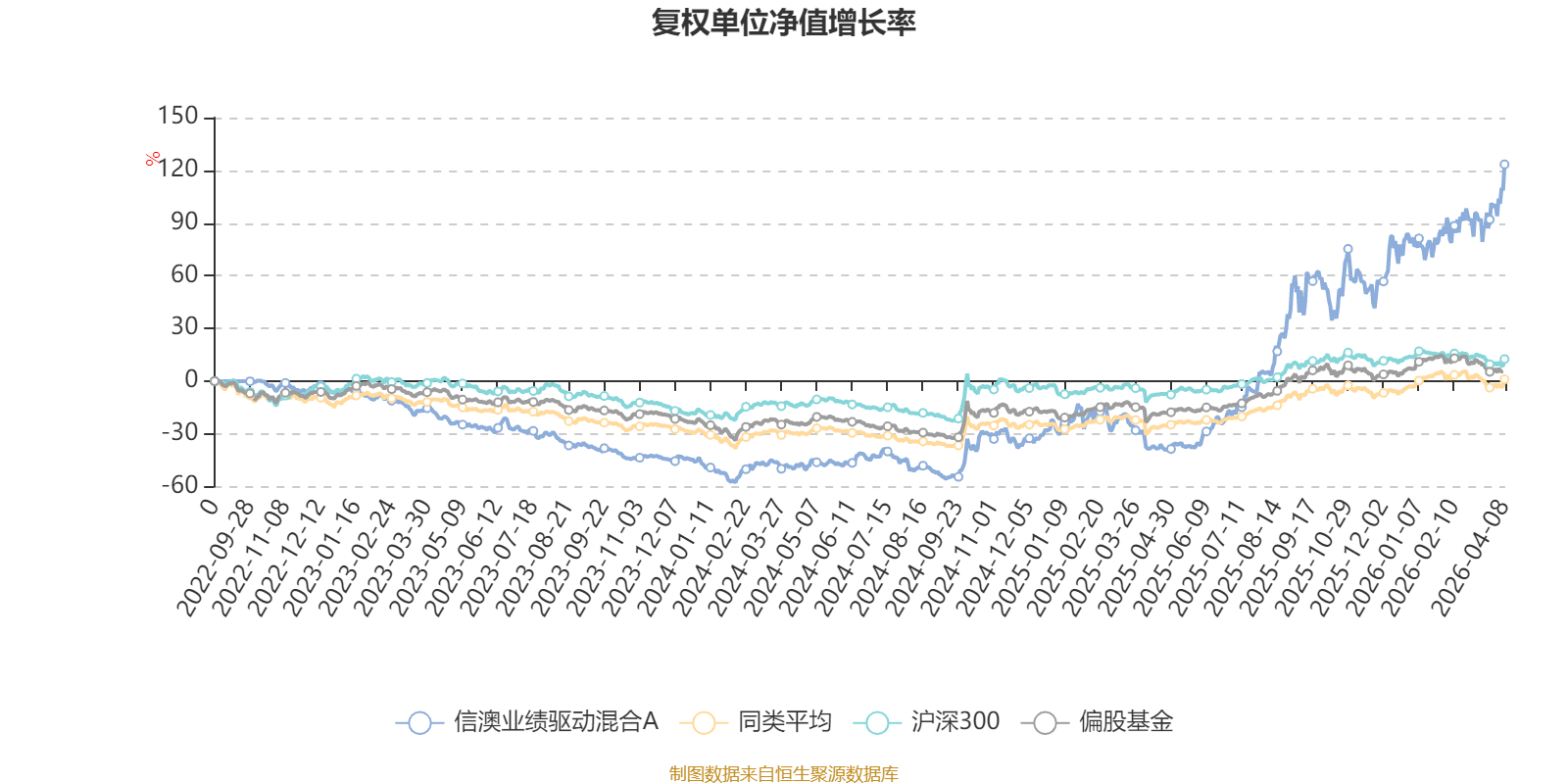截至4月8日,信澳业绩驱动混合A近三个月复权单位净值增长率为26.09%,位于同类可比基金9/689;近半年复权单位净值增长率为46.24%,位于同类可比基金5/689;近一年复权单位净值增长率为262.23%,位于同类可比基金2/685;近三年复权单位净值增长率为171.66%,位于同类可比基金1/417。